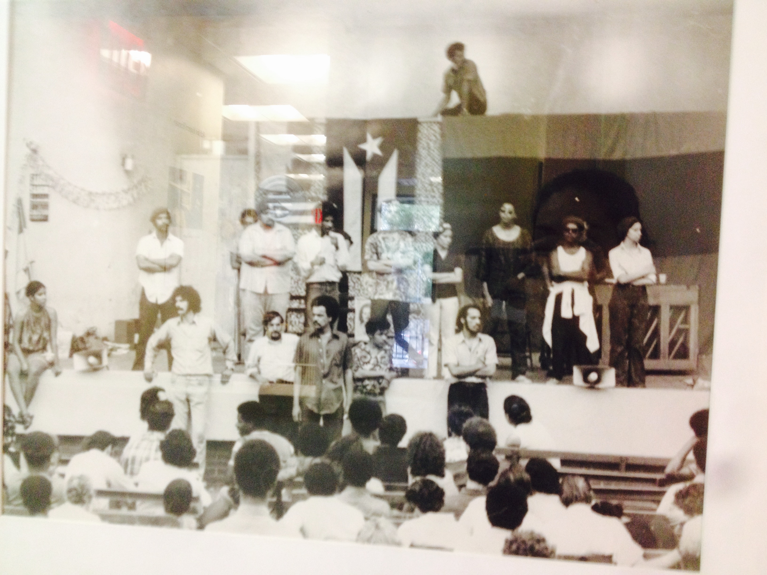 As we continued though the exhibit, we heard the powerful music created by the Young Lords, really clinging to the bomba y plena, and having it speak to their present reality. Our hair stood up on ends as the bongos drummed up our sleeping hearts. We learned about their Theater of Struggle, plays put together to highlight the injustices. (This made me think of the Theater of the Oppressed up in Washington Heights, and now we can’t wait to go) We read poems by Pedro Pietri, and saw how pain and struggle could be transformed in words. This was all very thrilling, especially for Ollie since he loves performing so much. He even went up on stage and spoke about making a new world where people’s hearts are full of love, where we fight the bad guys with guns but also songs.